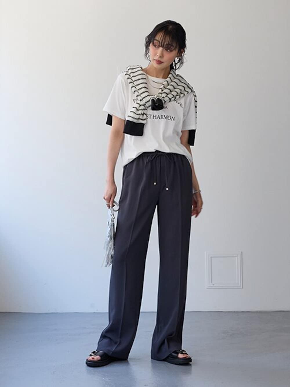 nissen Smile Models(nissen本店models)のTシャツ/カットソー「ジレセットアップ(薄手ジレ+ロゴTシャツ)」を使ったコーディネート