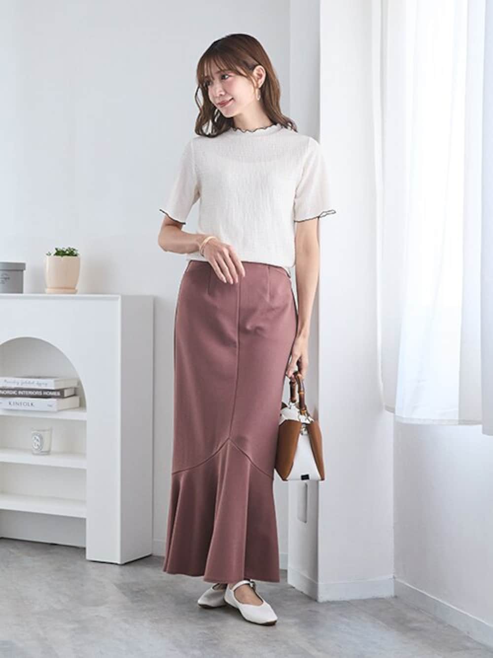 nissen Smile Models(nissen本店models)のスカート「<大きいサイズ> よく伸びるやわらかマーメイドスカート(ゆったりヒップ)」を使ったコーディネート