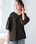 nissen Smile Models(nissen本店models)のシャツ/ブラウス「<大きいサイズ>【ドライワッシャー】ふんわり袖ブラウス(吸汗速乾)」を使ったコーディネート