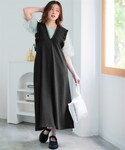 nissen Smile Models(nissen本店models)のワンピース「<大きいサイズ>カット楊柳フリルデザインジャンパースカート」を使ったコーディネート