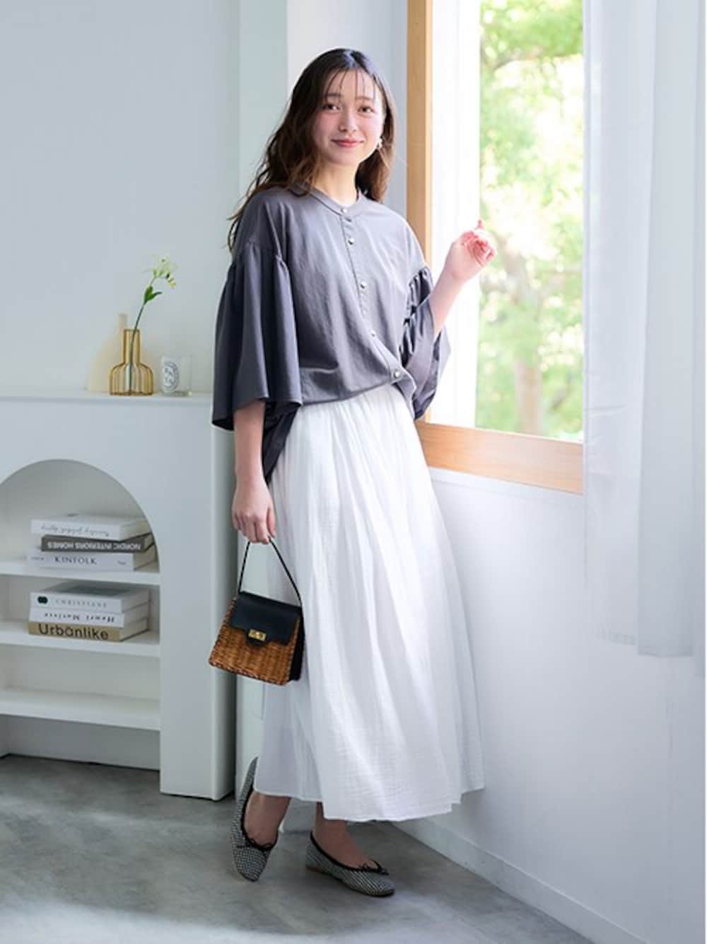 nissen Smile Models(nissen本店models)のスカート「ふわり軽いエアリースラブスカート(選べる2レングス)<大きいサイズ有>」を使ったコーディネート
