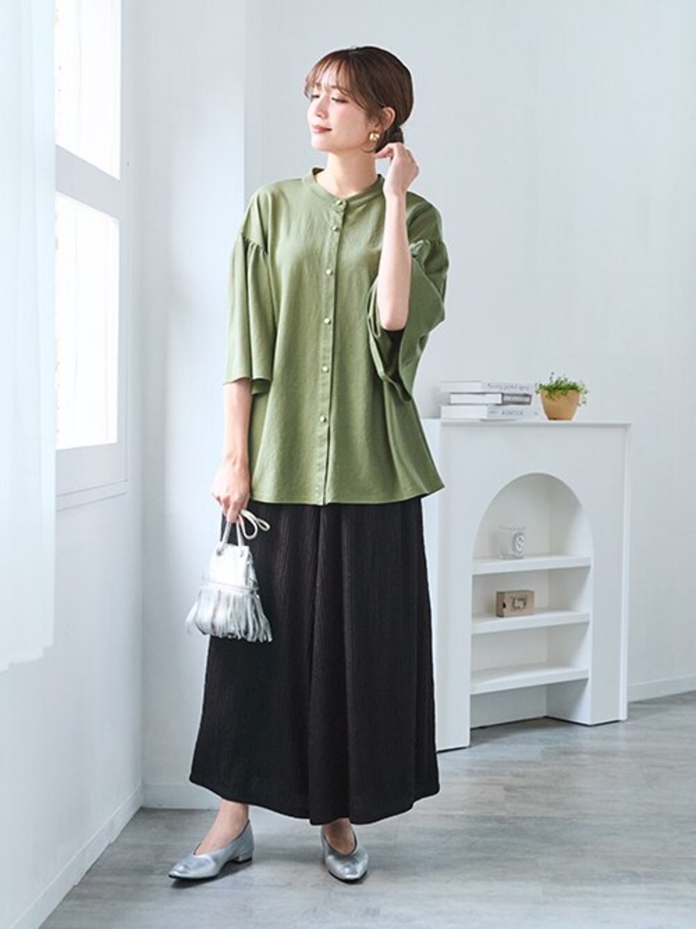 nissen Smile Models(nissen本店models)のTシャツ/カットソー「<大きいサイズ>美ラクRUタッチギャザーデザイントップス(接触冷感・抗菌防臭・UVカット・遮熱)」を使ったコーディネート