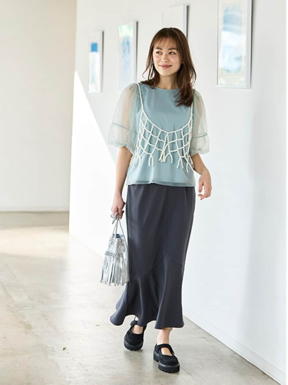 nissen Smile Models(nissen本店models)のキャミソール「<大きいサイズ>ビーズビスチェ」を使ったコーディネート