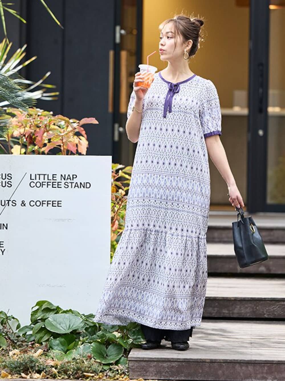 nissen Smile Models(nissen本店models)のワンピース「<大きいサイズ>プリントロングワンピース」を使ったコーディネート