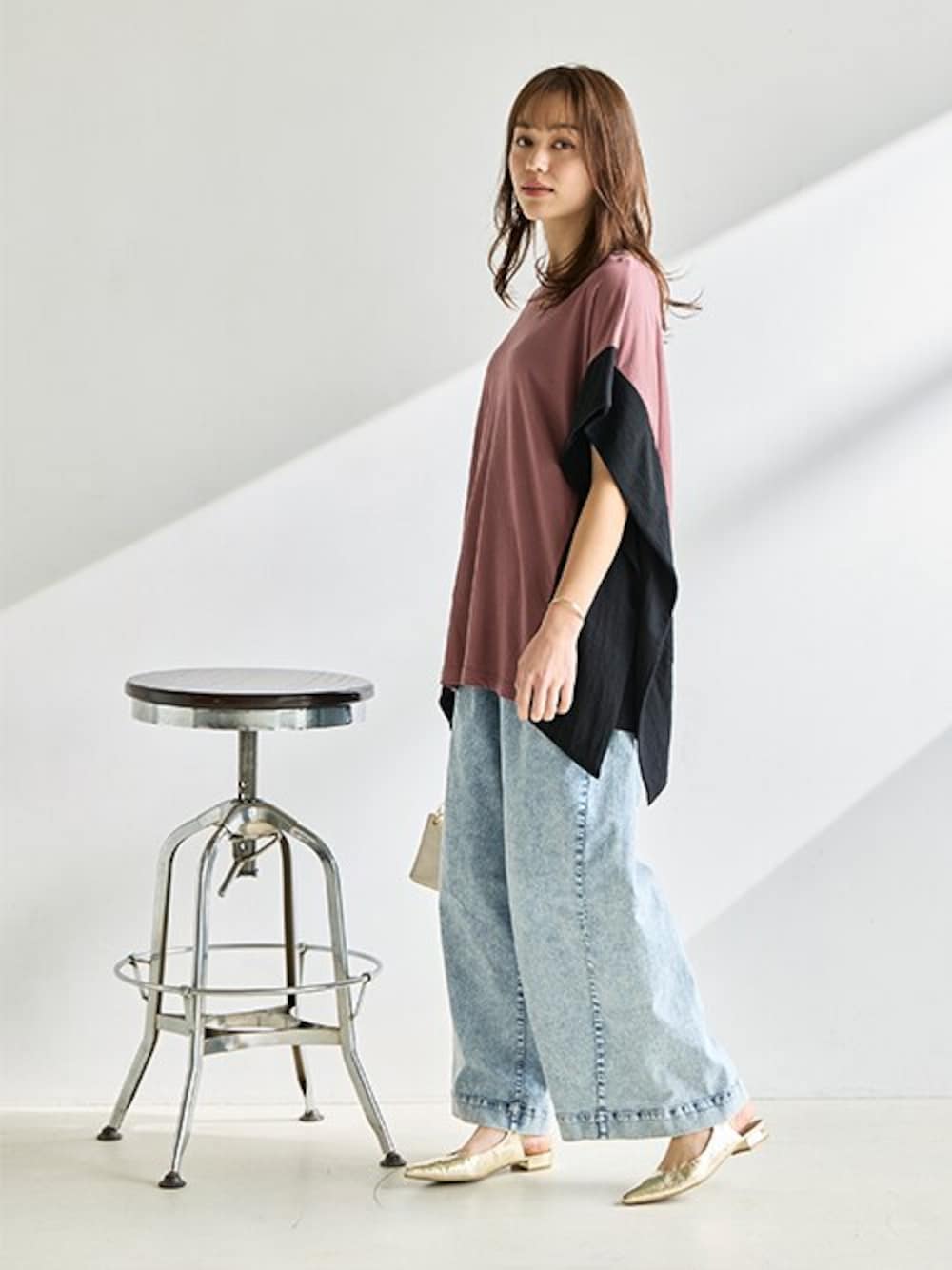 nissen Smile Models(nissen本店models)のTシャツ/カットソー「<大きいサイズ>美ラクRUタッチ配色プルオーバー(接触冷感・抗菌防臭・UVカット・遮熱)」を使ったコーディネート