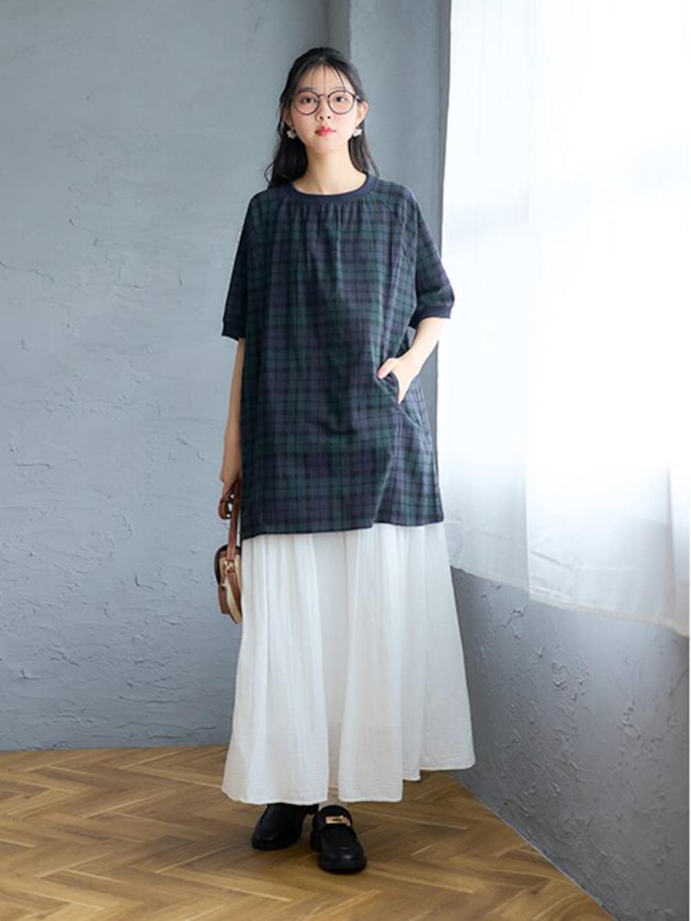 nissen Smile Models(nissen本店models)のスカート「ふわり軽いエアリースラブスカート(選べる2レングス)<大きいサイズ有>」を使ったコーディネート