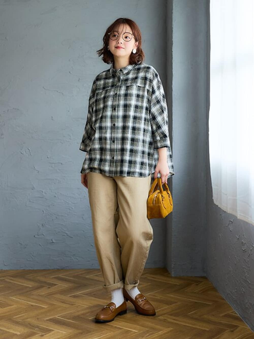 nissen Smile Models(nissen本店models)のチュニック「<大きいサイズ>綿100%柔らか7分袖ドルマンゆるシャツチュニック」を使ったコーディネート