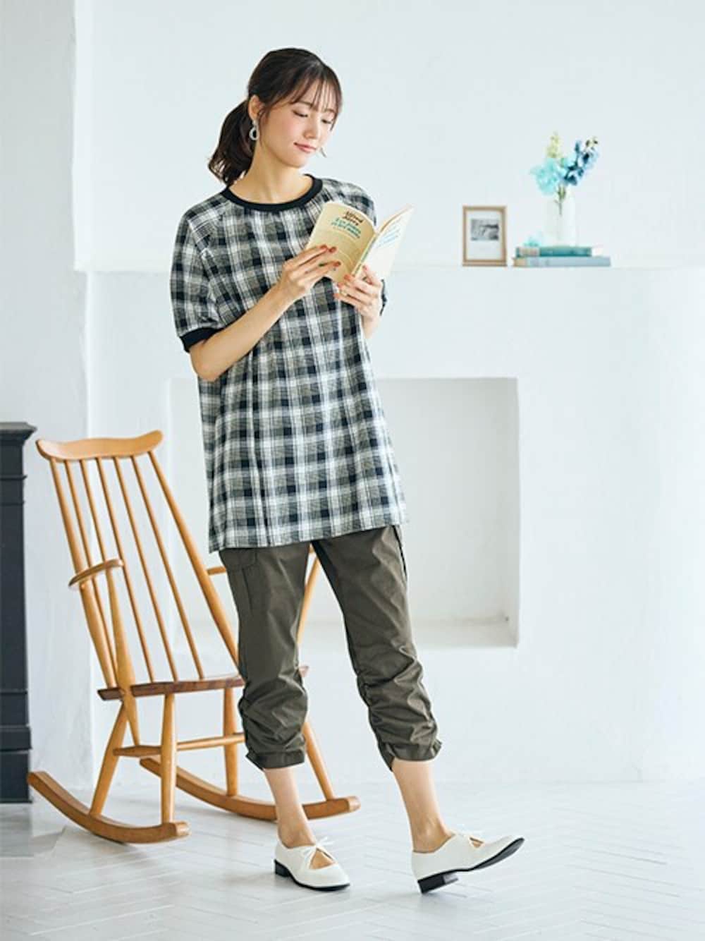 nissen Smile Models(nissen本店models)のTシャツ/カットソー「<大きいサイズ>綿100%柔らかラグランスリーブチュニック」を使ったコーディネート