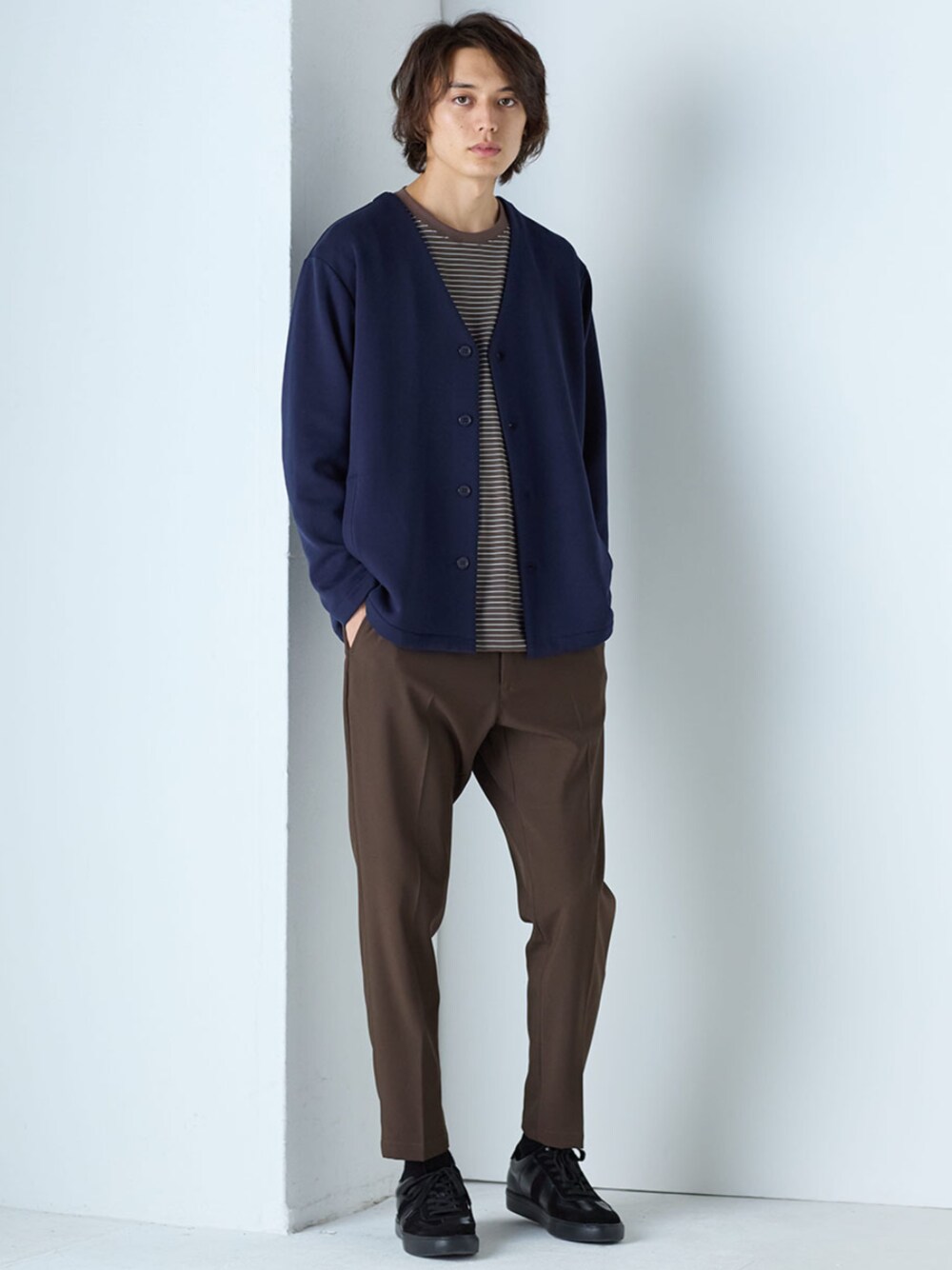 nissen Mens Models(nissen本店models)のカーディガン/ボレロ「ダブルフェイスオーバーサイズカーディガン」を使ったコーディネート