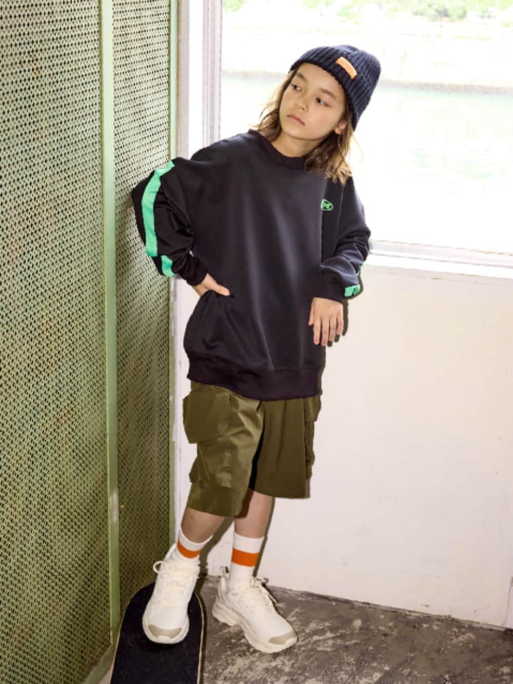 nissen Kids Models(nissen本店models)のスウェット「【販売終了】ビッグシルエットスウェットプリントトレーナー(男の子・女の子)」を使ったコーディネート