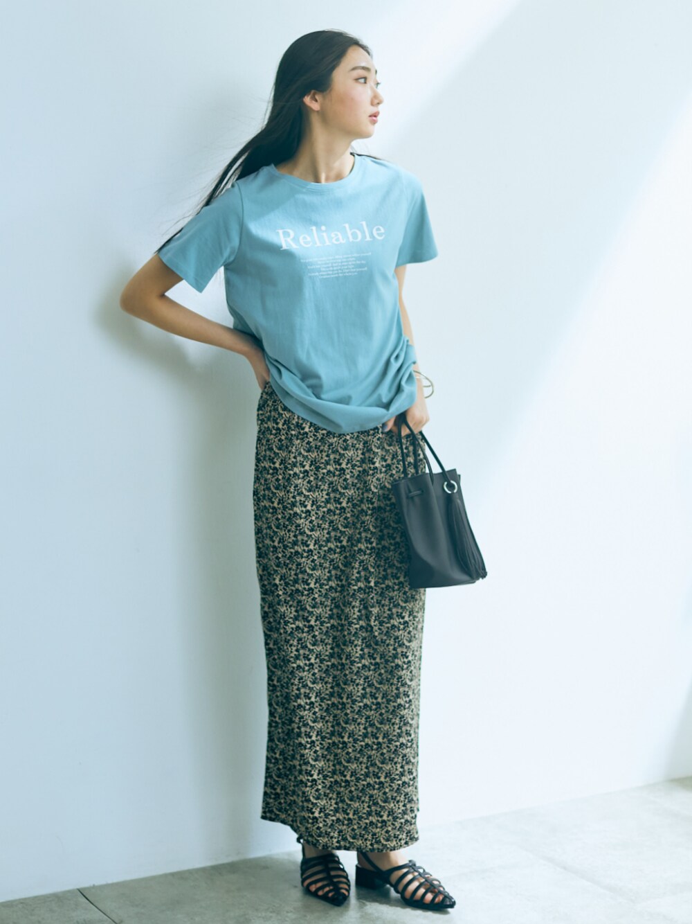 nissen Tall Models(nissen本店models)のTシャツ/カットソー「高身長 綿100%ロゴプリントTシャツ(トールサイズ)Essenave」を使ったコーディネート