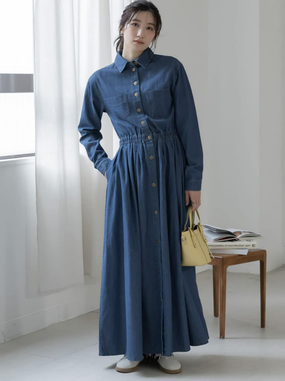 nissen Tall Models(nissen本店models)のワンピース「高身長 デニムマキシワンピース(トールサイズ)Essenave」を使ったコーディネート