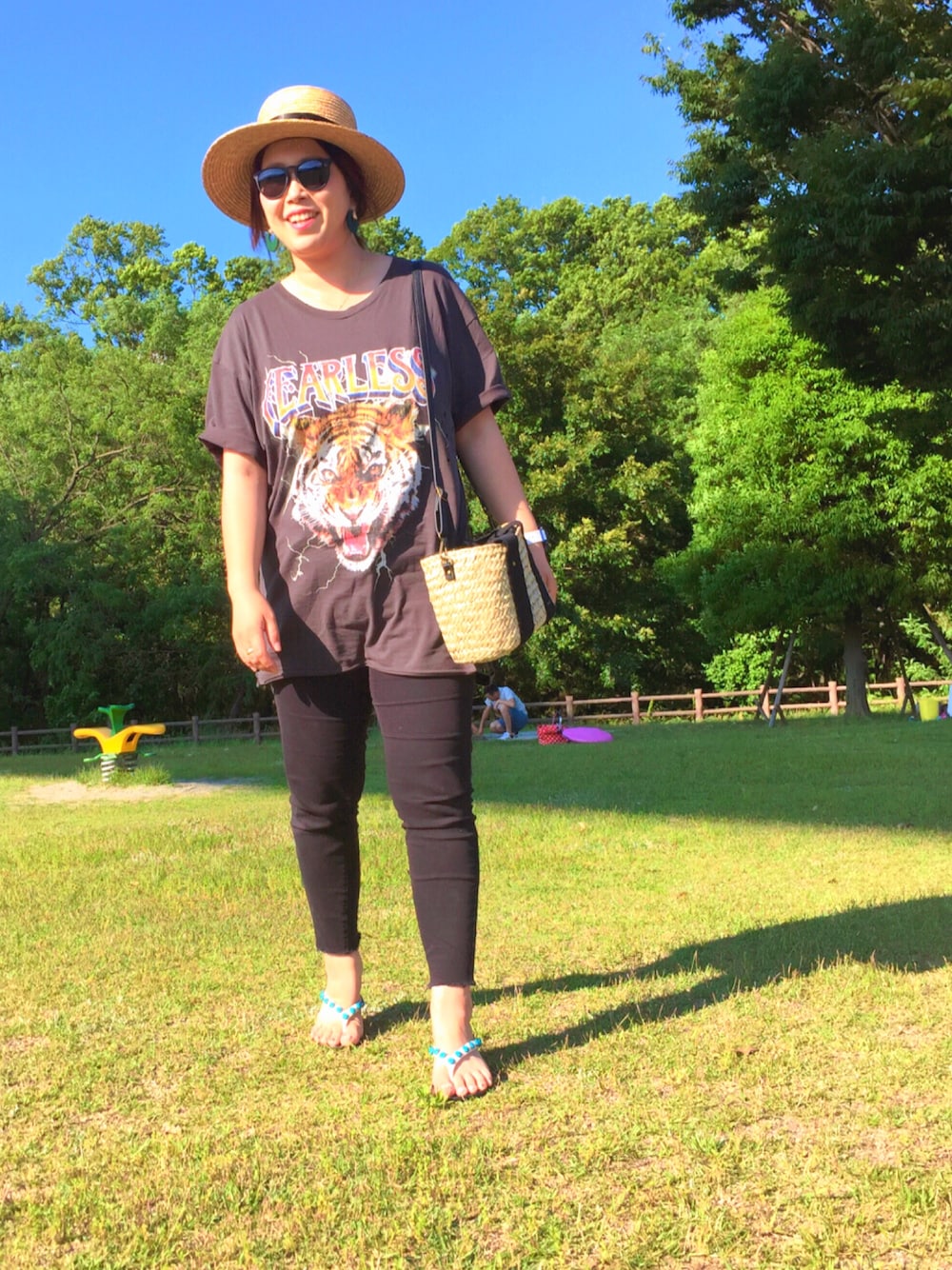 ☆mama code☆ 子ども達とプラプラお買い物の後に公園へー☀️ ダメージ加工のアニマルTシャツはWEGOのメンズヾ(◍'౪`◍)ノ゙ ラフなコーデも好きだなぁ❤️ かごバッグは一目惚れ😍