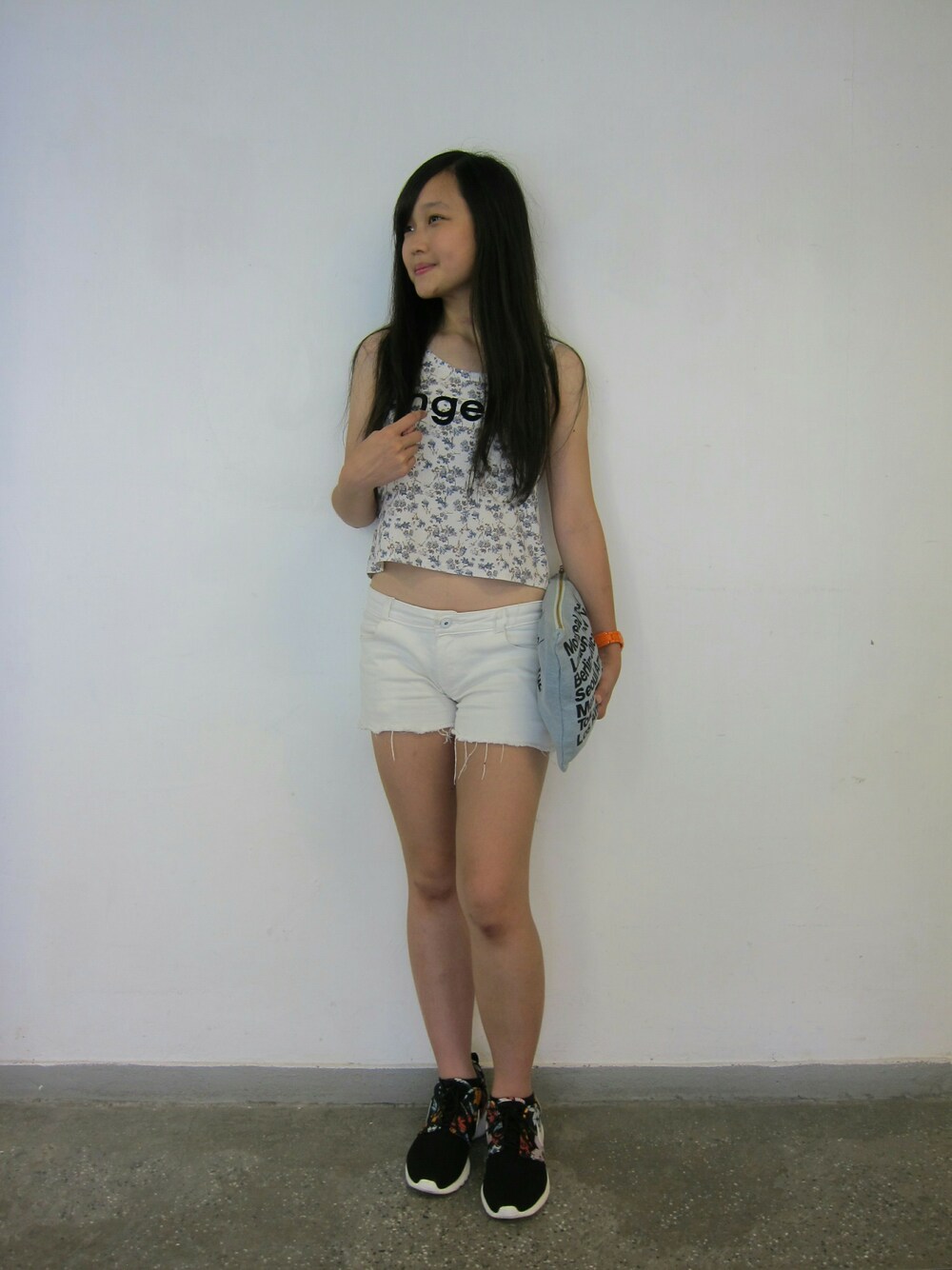 ブルー系のバッグ、ブラック系のシューズを着用したレディースの夏コーディネートの1枚目の写真