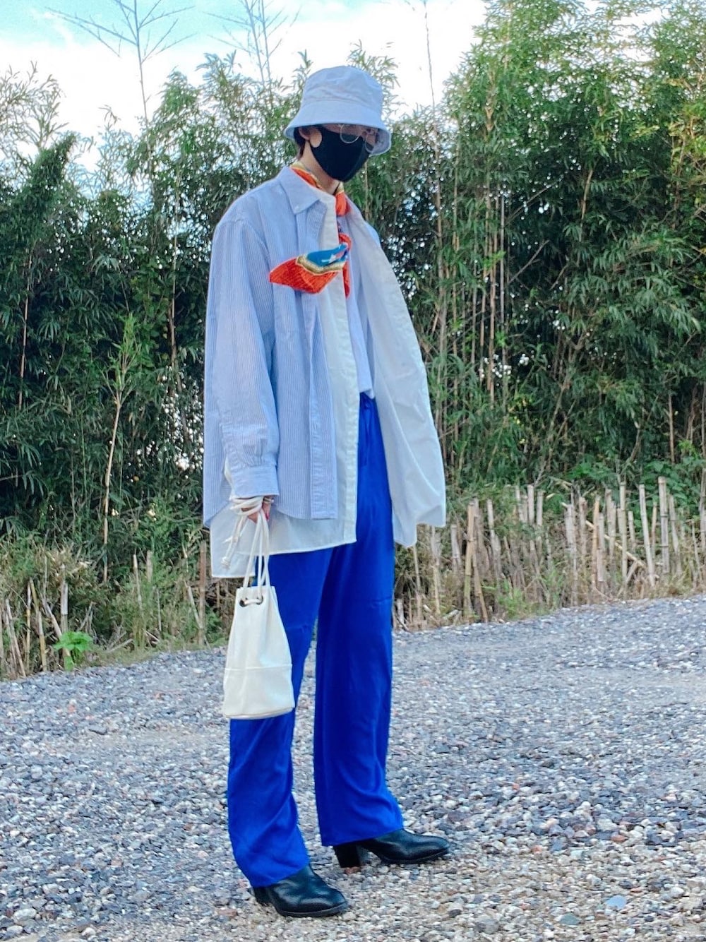 3脚を買ったので試しに撮ってみました🥰 青コーデを組んで夏の〆を表現しました〜 久しぶりに青パンツ履いたけどこの雰囲気最高だよね‼️😭 スカーフは #zara のレディースアイテム! それに #wego のリングを付けてます! アウターシャツは #beautyandyouth のオーバーサイズストライプシャツ! 試着の時にドンピシャ来て買っちゃったやつ!笑 中の白シャツは #lowrysfarm のロングバンドカラーシャツ! メンズも取り扱ってるので是非!😊 パンツはZARAのレディースです! 靴は #luis のヒールブーツ! ずっと愛用してます‼️ バッグは #lakole の巾着バッグ! 肩がけや斜め掛けも出来ますがあえて手に持つことで差別化! ーーーーーーーーーーーーーーーーー