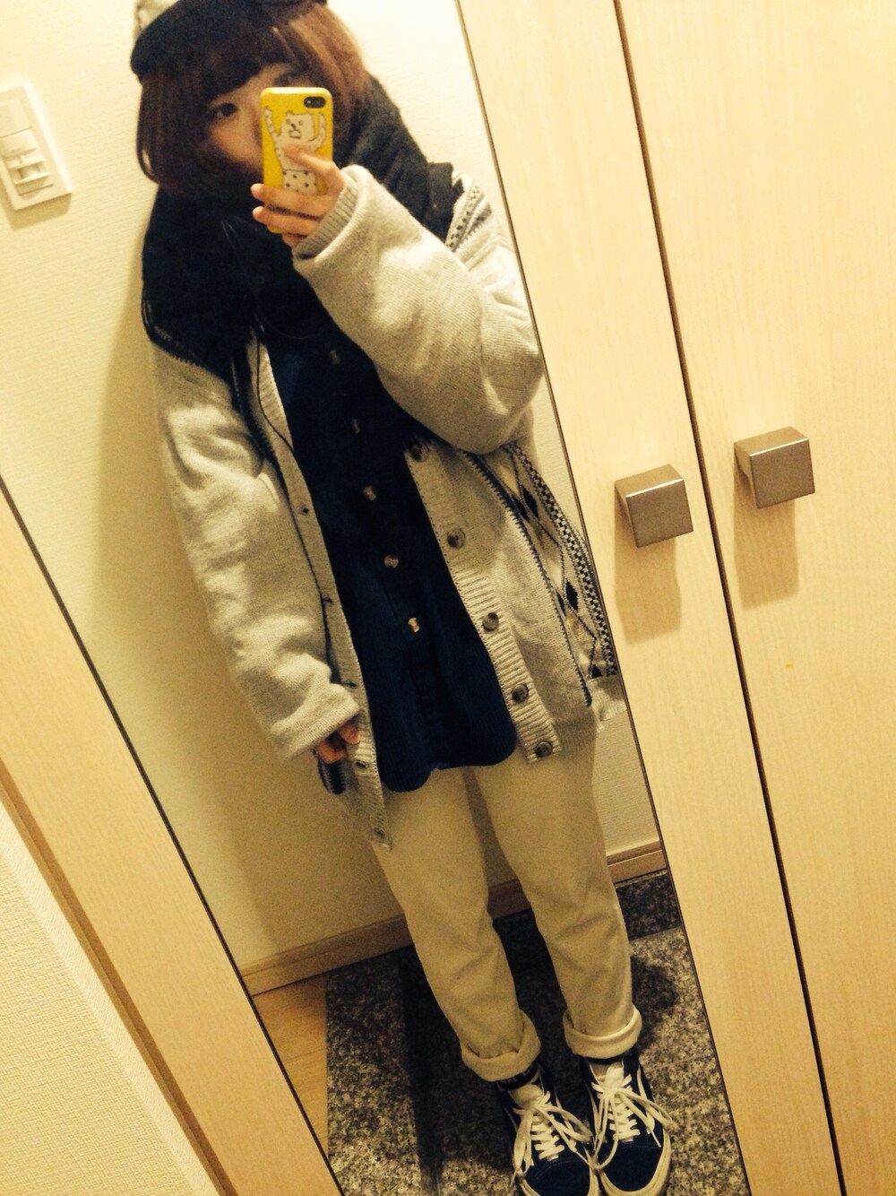 カーディガン 古着 コーデュロイシャツ 古着 レギンスをゆるパンみたいにはくと かわゆいいいい。