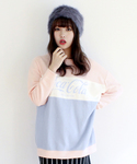 ピンク系のスウェット、ブルー系のその他アウターを着用したレディースの春コーディネートの1枚目の写真