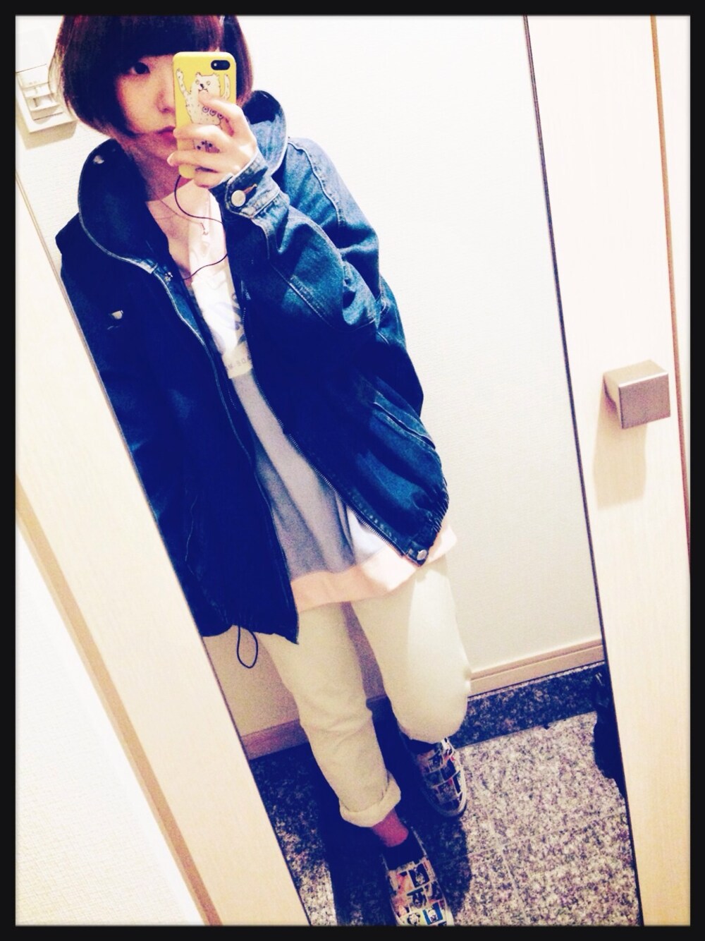 古着のデニムパーカーが めっちゃくちゃかわいいんですよ フードがおっきくて可愛いんですよ 重たくて肩こるけど可愛いんですよ