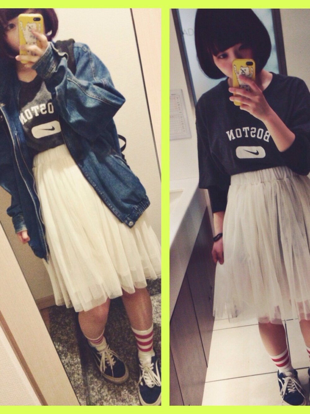 ほいせっせー! 白のチュールスカートもやっぱり 可愛くは着れまてん。