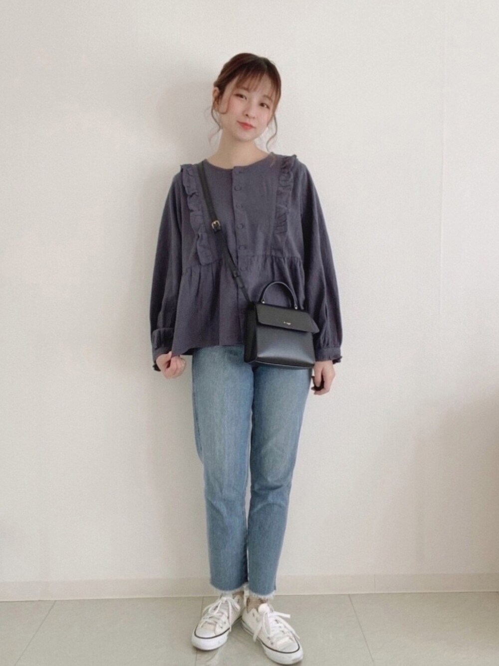 ㅤㅤㅤㅤㅤㅤㅤㅤㅤㅤㅤㅤ こんばんは、 ご覧いただきありがとうございます! ㅤㅤㅤㅤㅤㅤㅤㅤㅤㅤㅤㅤㅤ 休日コーデです🌿 かわいいフリルブラウスをデニムとスニーカーで カジュアルにまとめてみました! 胸元のフリルもお気に入りですが、 袖口のフリルもとってもお気に入りです⸜❤︎⸝ ㅤㅤㅤㅤㅤㅤㅤㅤㅤㅤㅤㅤㅤ ふんわりイメージのサマンサですが デニムやスニーカーで合わせると可愛くなりすぎずに 着ていただけます💡ㅤㅤㅤㅤㅤㅤㅤㅤㅤㅤ ㅤㅤㅤㅤㅤㅤㅤㅤㅤㅤㅤㅤㅤ 近所で過ごす休日は自転車に乗ることが多いので、 パンツ&スニーカースタイルが多いです👟ㅤㅤㅤㅤㅤ