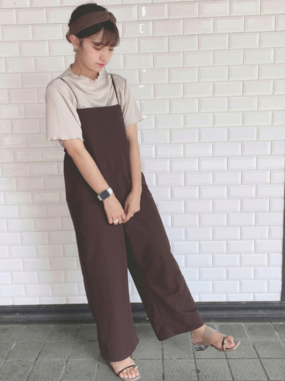 𓏲 ˒˒ ご観覧、いいね、お気に入り いつもありがとうございます!♡ こんにちは🌷 𓐄 𓐄 𓐄 𓐄 𓐄 𓐄 𓐄 𓐄 𓐄 𓐄 𓐄 𓐄 𓐄 𓐄 𓐄 𓐄 𓐄 𓐄 𓐄 𓐄 𓐄 𓐄 𓐄 𓐄 𓐄 ꒰ 本日の出勤コーデ ꒱ 今日は、雨の日コーデ☔️ 雨が降っているので、汚れないように 暗めのサロペットにしました🤎𓂃 𓈒𓏸 雨は苦手だけど、おしゃれでいたい!笑 今日は髪の毛も一つでまとめて お団子にしたので、 湿気対策もバッチリです😅笑 クリアヒールは、 夏らしさがあって 今の時期にぴったりです♡♡ 流行りのサムリングに、 デザインがあってとってもかわいいので お気に入りのサンダルです🤍 見てくださりありがとうございました🌿 ˗ˏˋ 𝘧𝘰𝘭𝘭𝘭𝘰𝘸よろしくお願いします⚘ˎˊ˗