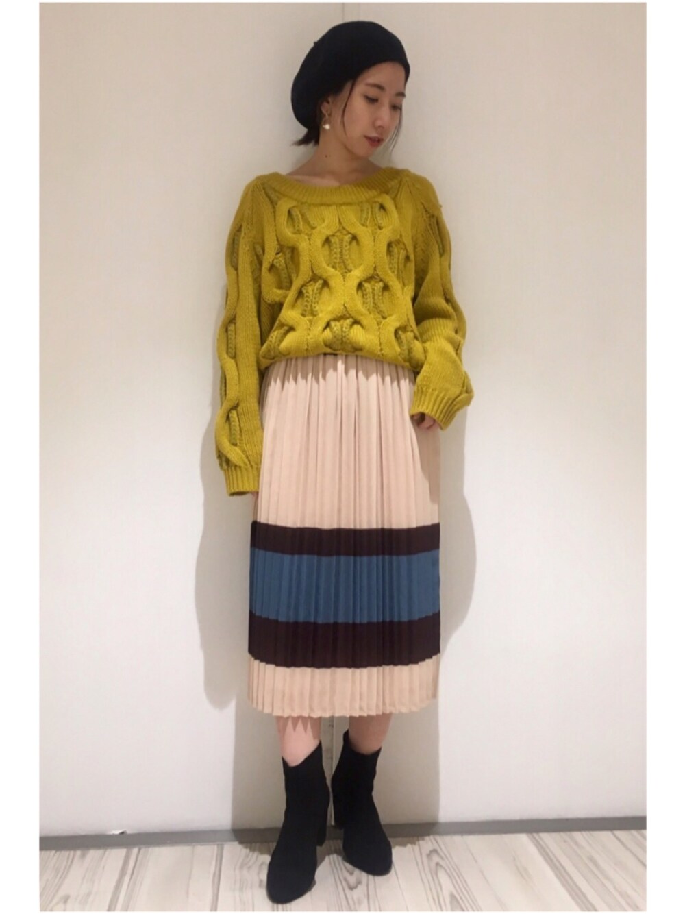 新作のケーブルニット✳︎ マスタードイエローが 今季らしく映えるので さりげなくトレンド顔に♩