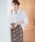 オーバーサイズのシャツは 襟を抜かしてお袖を上げると簡単に抜け感がプラスできます💫 ゴブラン柄のスカートと合わせたきれいめカジュアルコーデ💠