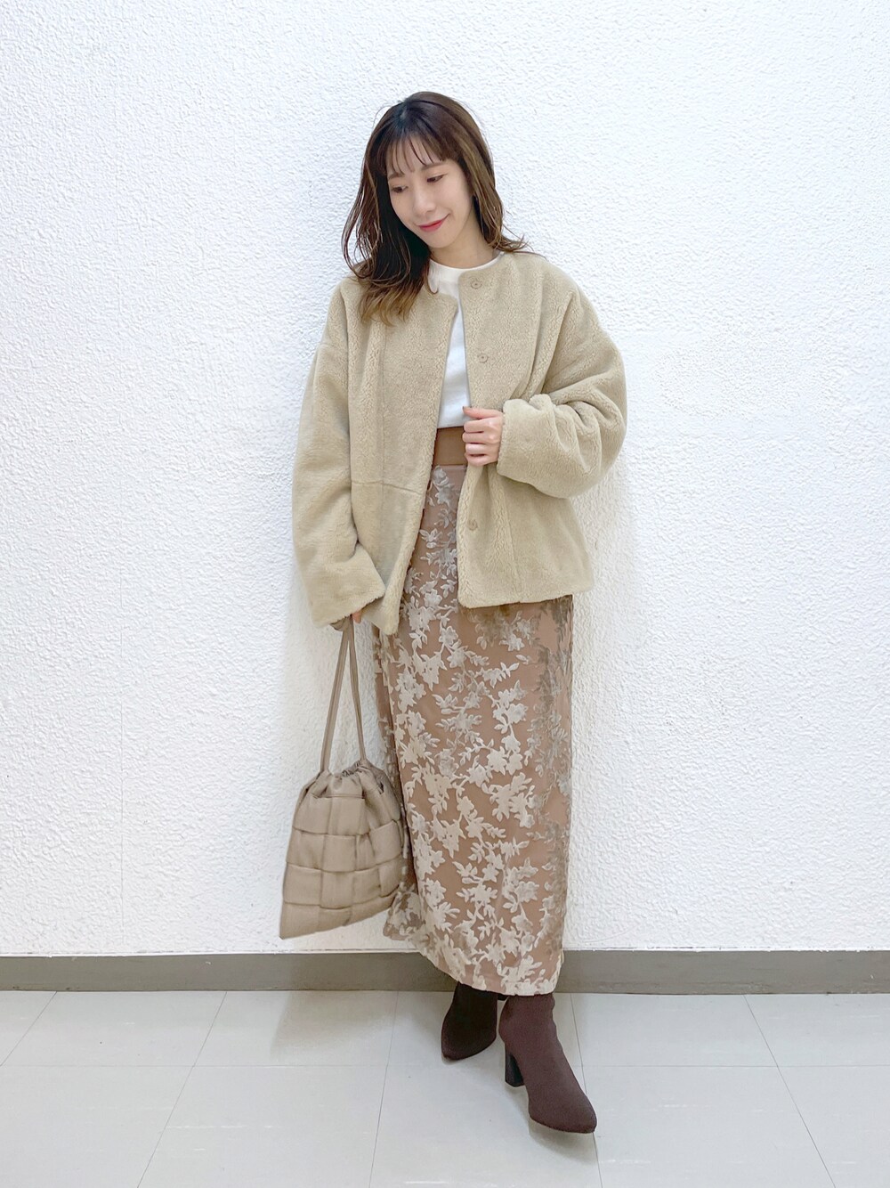トレンドのボアアウター🧸 ワントーンでまとめるときれいめに仕上がります♡