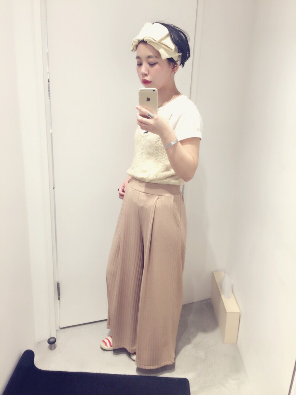 ニットキャミお気にいり。 パンツはらくちん。 スニーカーは何年も持ってるけど、たまにしか履かない。