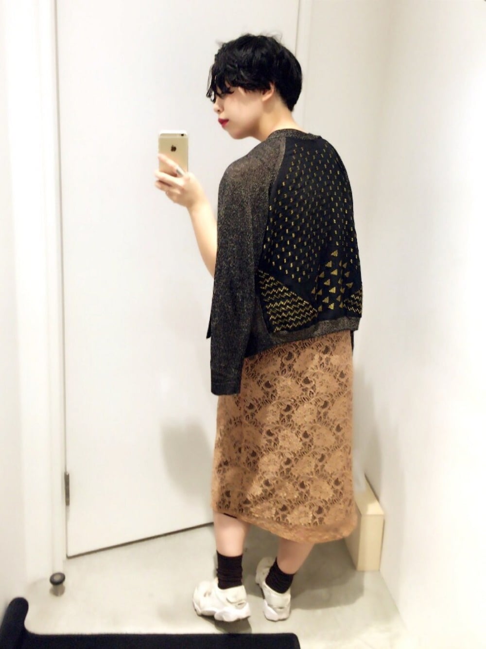やっぱりこのカーディガンのうしろ! かわいいの。これ。 レースタンクワンピースにキャミワンピースで下着のような格好だなあ。