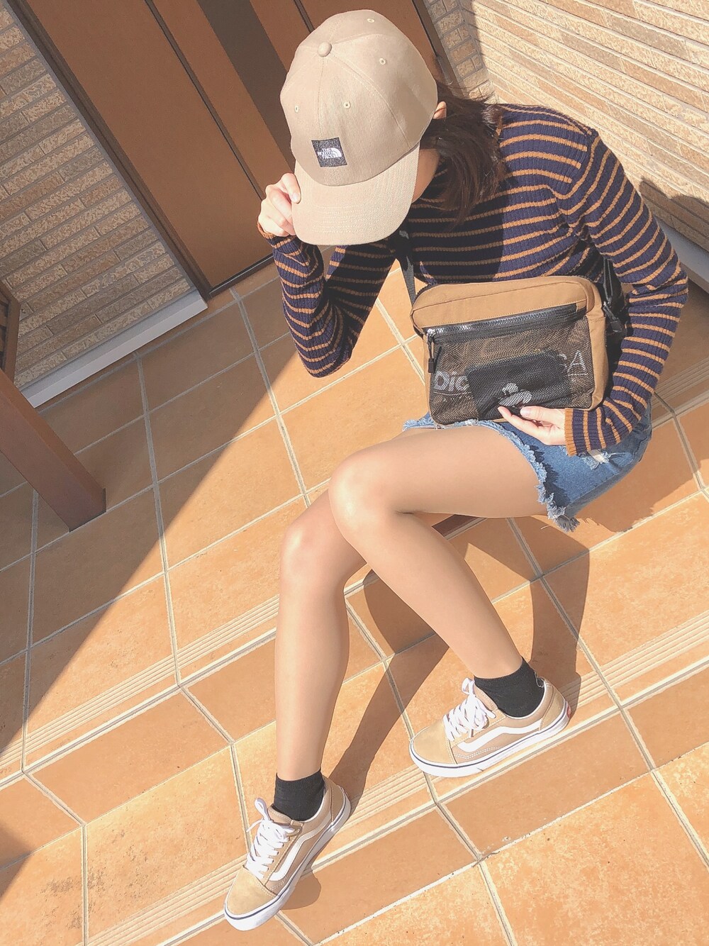 Ririのキャップ「THE NORTH FACE SQUARE LOGO CAP (ツイルベージュ)」を使ったコーディネート