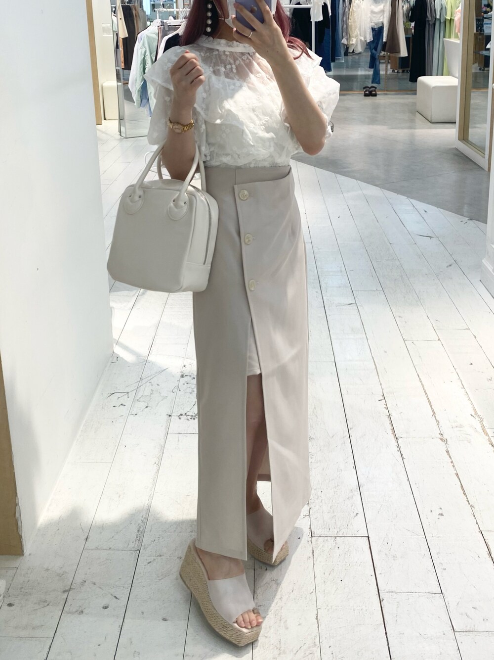 ブラウスもスリットスカートもナイスクラップで大人気♡ どっちも着回ししやすいからお気に入りです! ワントーンコーデでガーリーに◎