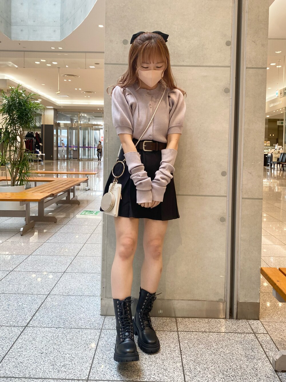 小物まで全身ナイスクラップコーデ♡ 今年トレンドのアームウォーマーがセットになったアイテム!紫のカラーは珍しいからお気に入りです! 黒のお洋服とブーツなので、リボンとパールのついた小物でガーリーな雰囲気に♡!