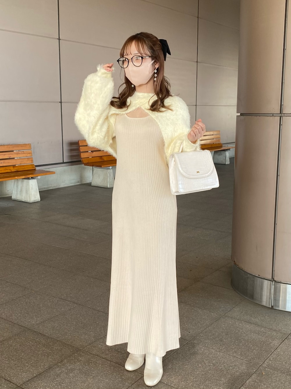 e r i(one after another NICE CLAUP)のワンピース「ふわふわのニットがあざと可愛い。ニットセットワンピース」を使ったコーディネート