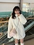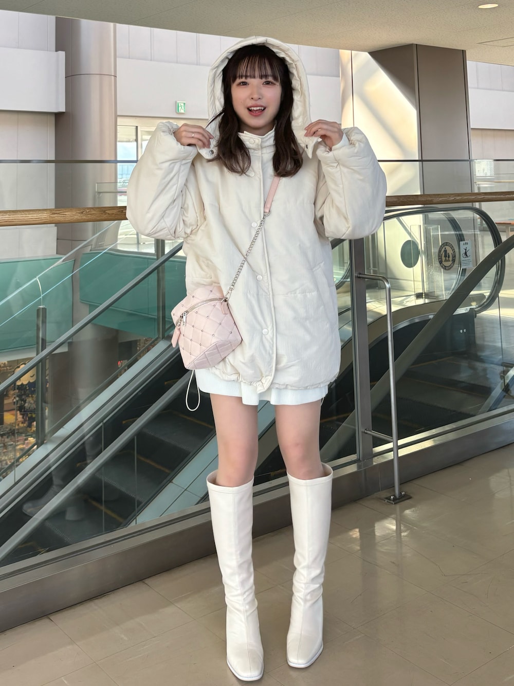 白だったらガーリーに可愛くダウンも着れちゃう🥹 軽くて着やすいし、丸みのあるシルエットとおしりの下まで隠せる丈が◎ 低身長でも大きすぎないです!