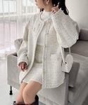 e r i(one after another NICE CLAUP)のノーカラージャケット「ツイードジャケット/セットアップスカートあり」を使ったコーディネート