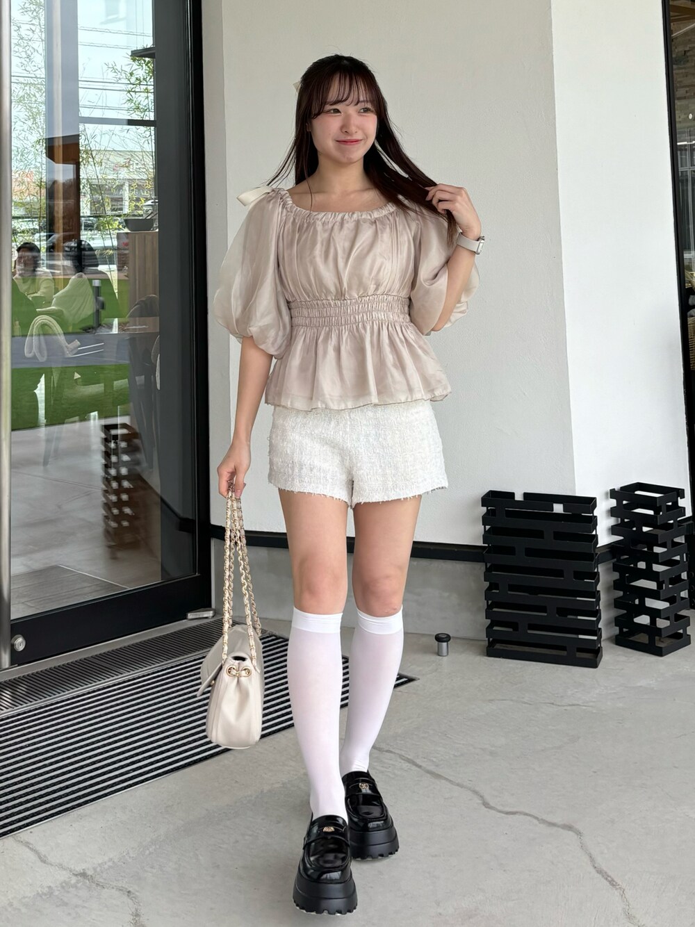 大人気で再入荷してきた、肩リボンブラウス🎀 オフショルにも出来るので骨格ストレートにはありがたい、、! ショートパンツや、デニムパンツなどが全体のシルエットが綺麗に見えて良かったです✨️
