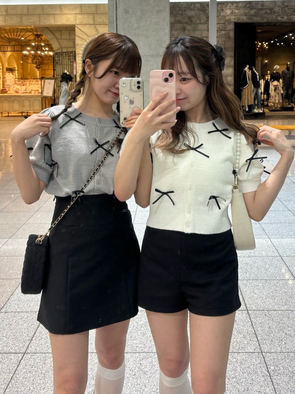 e r i(one after another NICE CLAUP)のカーディガン/ボレロ「リボンいっぱいニットカーディガン」を使ったコーディネート