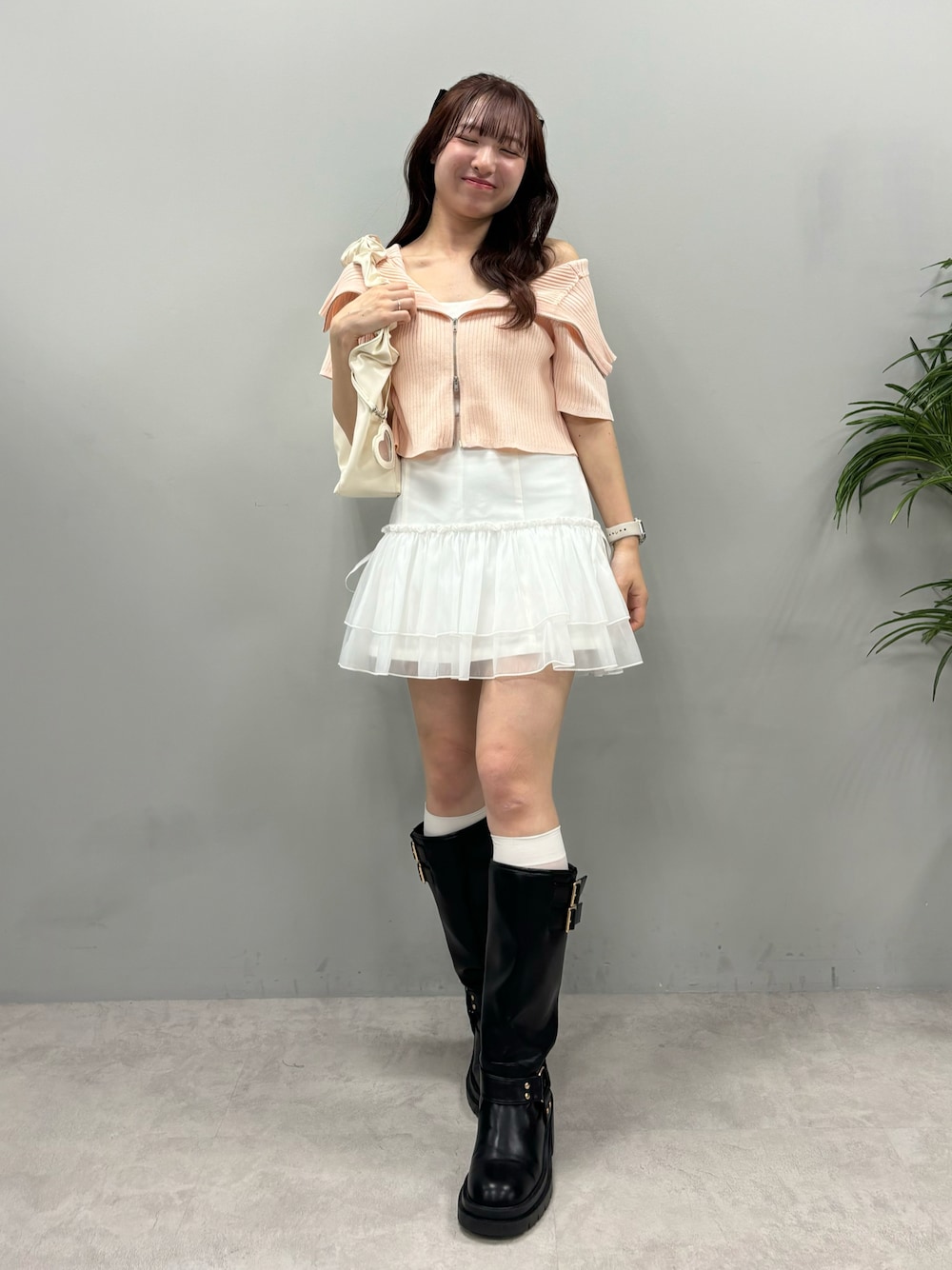 今トレントのカジュアルなZIPニットも、ピンクと甘めなミニスカート合わせでガーリーなトレンドコーデができます!! かなり甘めなスカートですが、あえてカジュアルなブーツに合わせるとバランスの取れた今っぽいコーデになるのでおすすめ︎💕︎ ブーツこの時期に、、!?となりますが今韓国アイドルちゃんたちもよく履いているのでトレンドコーデがお好きな方かなりオススメです✨️