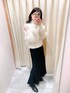 156cm 骨格ウェーブ 足のサイズ 23.5 (幅広め) 【tops】 肩開きフェザーニット アイボリー : フリーサイズ フェザー素材なので毛玉になりにくいのに とても暖かいです♡♡ 肩開き具合は肩の上にループに通せば 調整可能になります!! あまり長すぎない丈感のため アウトスタイルもしやすくなってます⭐︎ 【bottom】 リブマーメイドスカート ブラック : フリーサイズ ウエスト周りはニット1枚が着られるくらい なので緩めが苦手な方は細ベルトで ウエストを固定しても良いかと思います! 私の身長ですとペタンコシューズより 少し厚底があった方が安心かと思います。 リブの生地なので縦ラインが しっかり出るので細見え抜群です!!!☆ 【shoes】 ストレッチブーツ ブラック / Mサイズ ヒールが苦手な方でも履きやすい チャンキーヒールです。 24.0寄りの方は Lサイズがオススメです。 薄手の靴下までであれば Mサイズで私の足のサイズであれば ジャストでした!