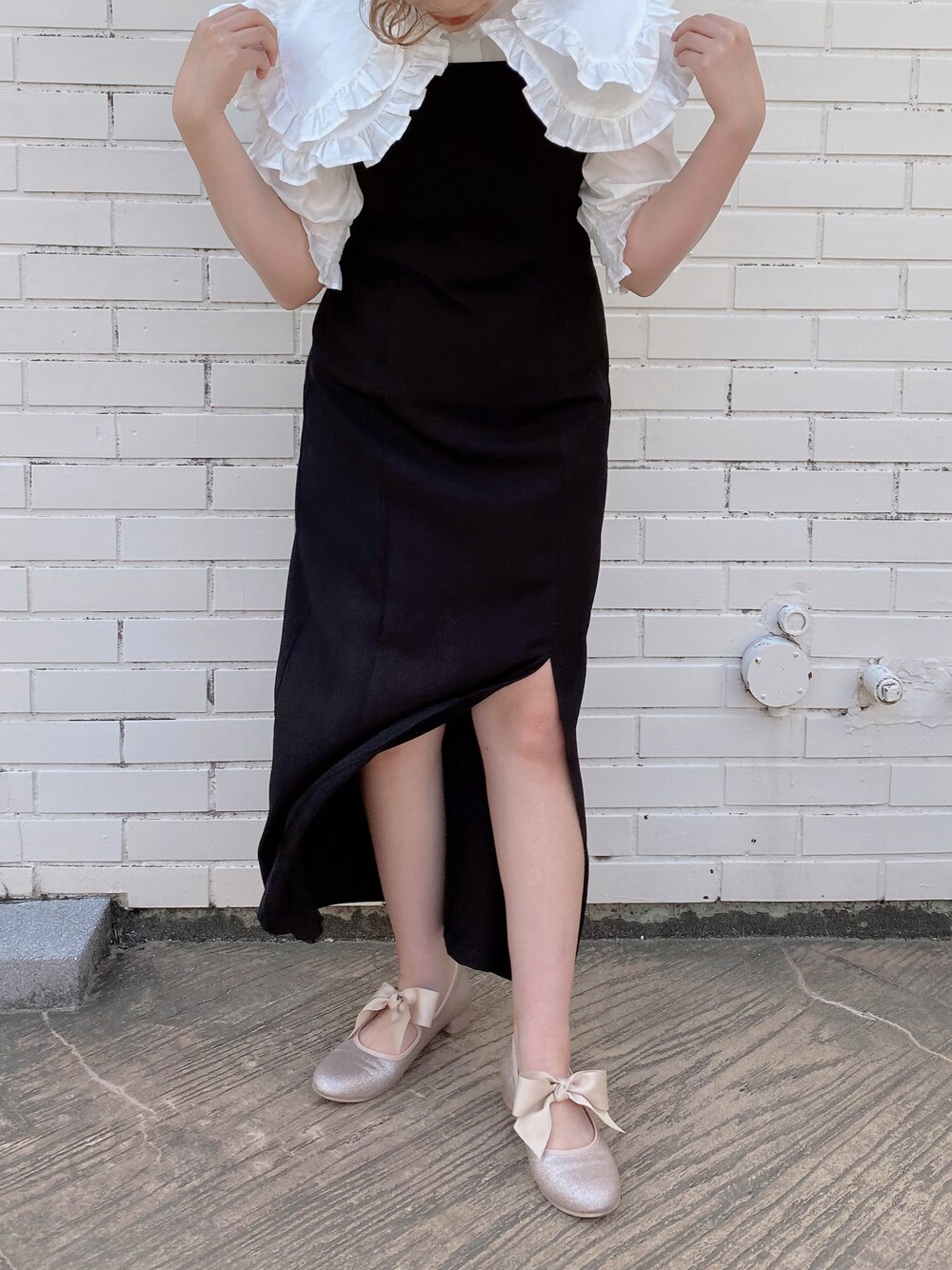 WEB、店頭ともに大人気の スリットキャミタイトワンピースに 推しウケ半袖ブラウス合わせてみました💓 甘めな感じになりつつも、黒のワンピースが落ち着いた雰囲気なので、甘めが苦手な方で挑戦したい!という方にもオススメです👌🏻