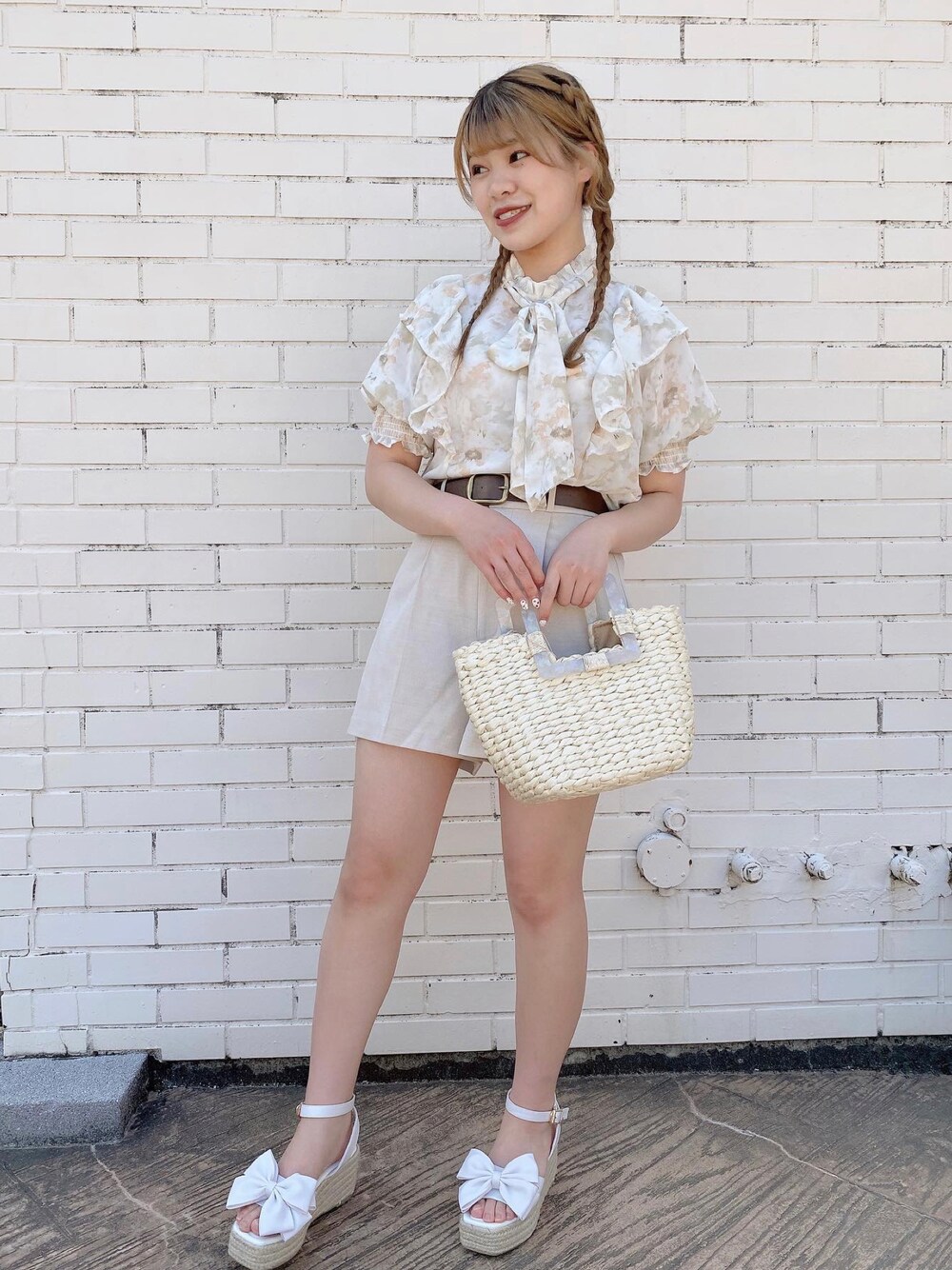 夏にピッタリの大人可愛いコーデ❤︎ ブラウスは前後どちらにしていただいても着用できます! ショートパンツのベルトは付属で付いてきます🥰🥰