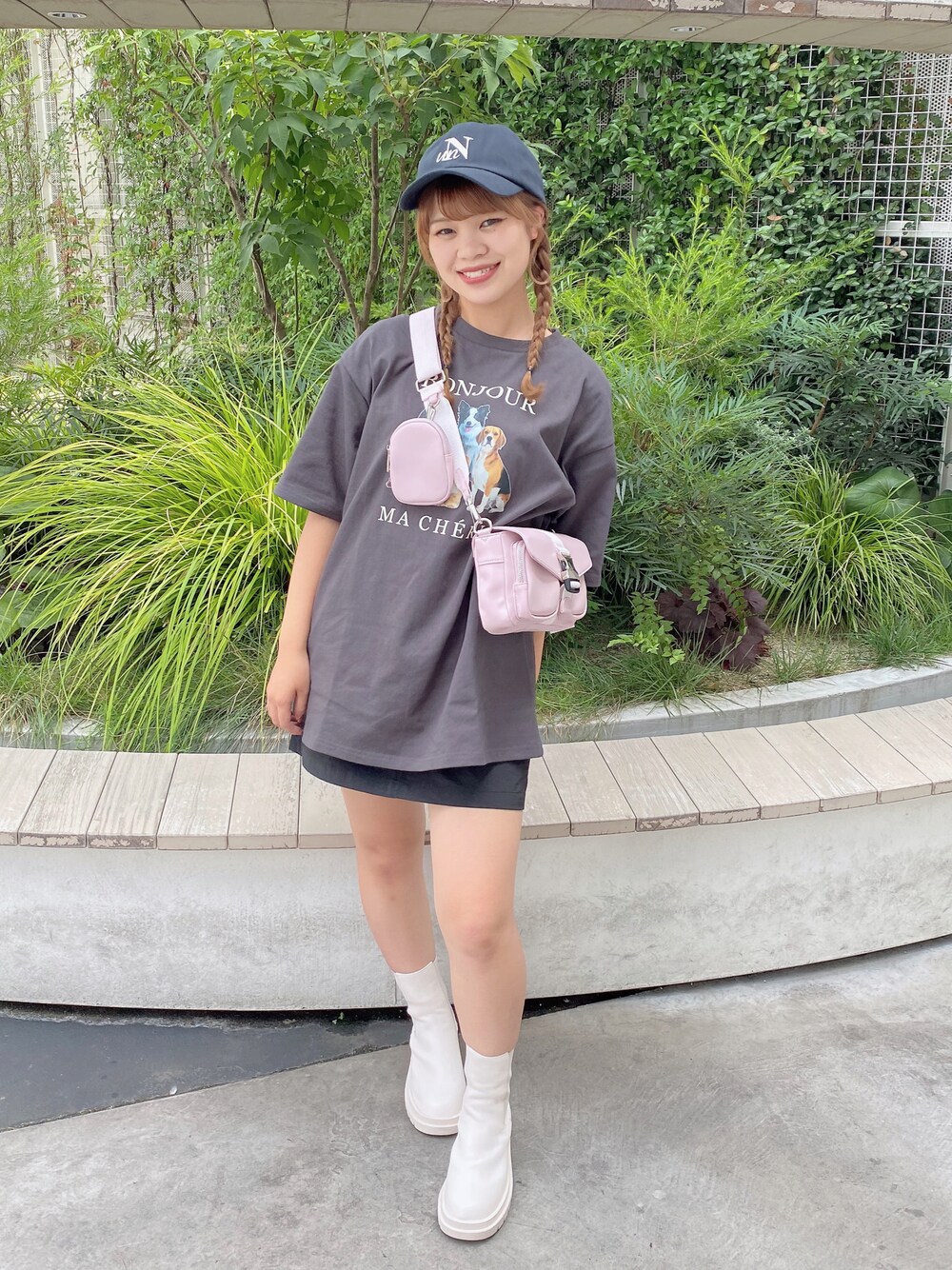 【身長】155cm 【足のサイズ】23.5cm 【パーソナルカラー】イエベ秋 【骨格】ストレート ご覧いただきありがとうございます❤︎ 【tops】BigサイズアソートTee サイズ展開:フリー ・ 大きいサイズのゆるっとカジュアルに着ていただける可愛いTシャツです❤︎ 私はわんちゃんがプリントされているネイビーカラーを着てみました! 少し厚めの生地なので今の時期から秋先まで長くお使いいただけます◎ 私のようにミニワンピ風に着てもとっても可愛く着ていただけます❤︎ 【skirt】ユーティリテminiスカート サイズ展開:フリー ・ カジュアルに着ていただけるカーゴのミニスカートです❤︎ サラッとした生地なのでとっても着心地がよく、暑い季節でも安心して着ていただけます! インナーとしてお使いいただいてもよしですし、Tシャツなどインしてカジュアルに着ていただいても間違いなしです◎ 【shoes】ヒールアップサイドゴアブーツ サイズ展開:S/M/L ・ 去年だった大人気のゴアブーツにヒールバージョンが登場しました! 今回はホワイト、キャメル、ブラックの3色でご用意しております❤︎ ヒールは6.5cmと少し高めですが、つま先部分も少し高さがあるため、さほどヒール感を感じないためとっても安定感があります◎ 靴下のようにスポっと履けるのが嬉しいです❤︎ 【bag】ユーティリティーショルダー ・ カジュアル好きさんにおすすめのサコッシュバッグです❤︎ ショルダーは短くも長くも調節が効くので様々な長さでお使いいただけます! ポケットがたくさん付いており、小物などもしっかり入ります◎