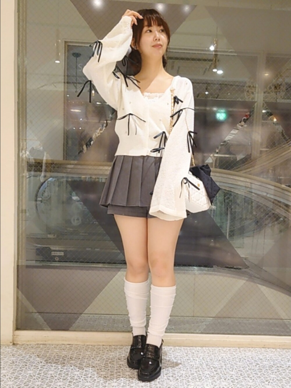 ばら(one after another NICE CLAUP)のカーディガン/ボレロ「【Mode Ribbon Collection】リボンカーディガン」を使ったコーディネート