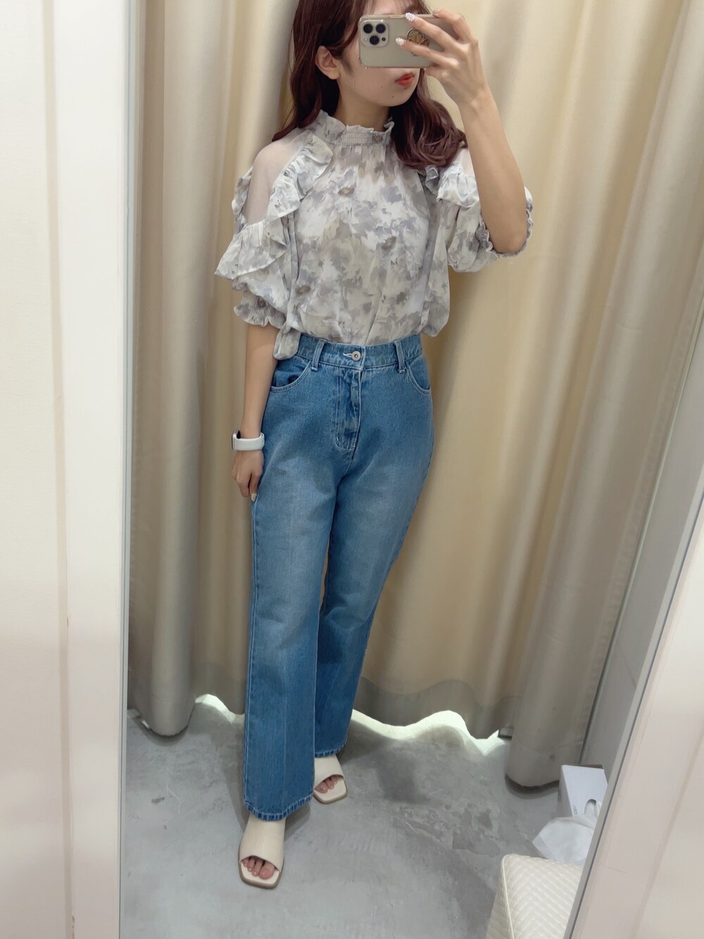 ●トップス 肩が透けていたり、フリルがあって可愛いデザインになってます! でも柄が大人っぽいのでそんなに甘くならずに着て頂けます! レースのインナーを着れば透け感も気にならずに着れちゃいます! ●パンツ 裾が切りっぱなしになっていて可愛いです! 明るめのデニムはこれからの時期持ってるとすごく着回しできるのでおすすめです! 形も足が長くすっきり着れるデザインになってます! 私は身長156cmでSサイズでちょうどよかったです!