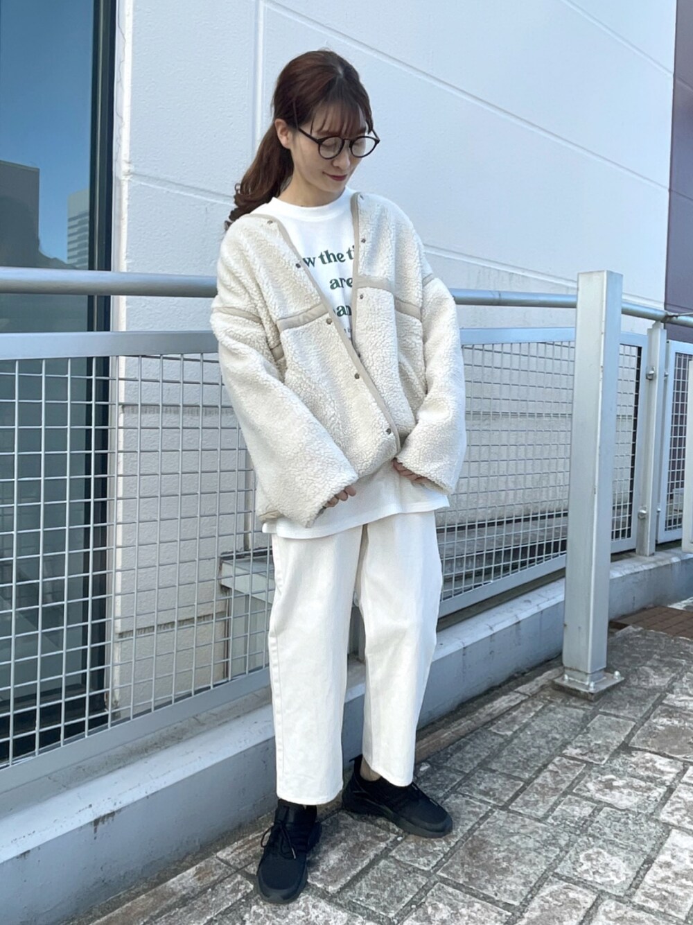 冬のホワイトコーデ❄️ たまにしたくなる全身白!!🤍 ボアブルゾンはリバーシブルで 両側にポケットが付いているのが お気に入りです😀 アウター、インナー、パンツは NICECLAUPOUTLETのアイテムです✨ プロフィールURLからご覧頂けます🛒