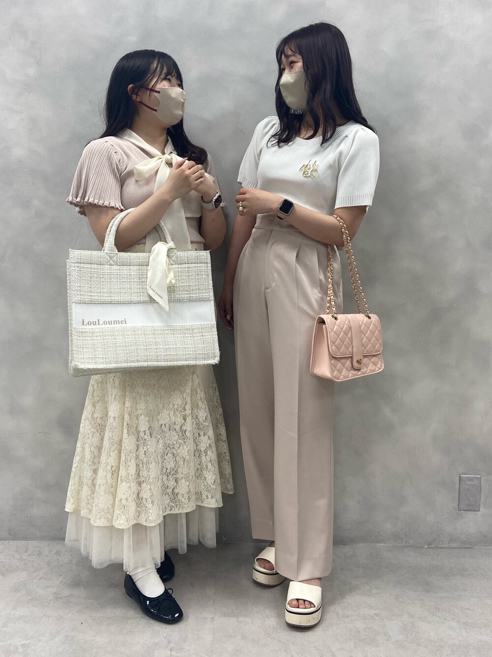 左スタッフです🙆♀️ 身長157cm 骨格ストレート 足のサイズ23.0 細くないので体型が気になる方の 参考になれば嬉しいです◎ 【トップス】 長袖も大人気だったトップスが半袖に なりました!!!! ニットだけど夏でも着やすい素材で、 リボンもテロテロリボンだから結びやすいです! 袖が広めなので窮屈感もないしさらっと着られます! 【スカート】 フリーサイズでこういうタイプのロングスカートは サイズが大丈夫か心配になってしまうのですが、 余裕で履けました!!!!嬉しい! ゴムがしっかり伸びるのでお腹ぽっこりの 私でもらくらく着られます♡♡