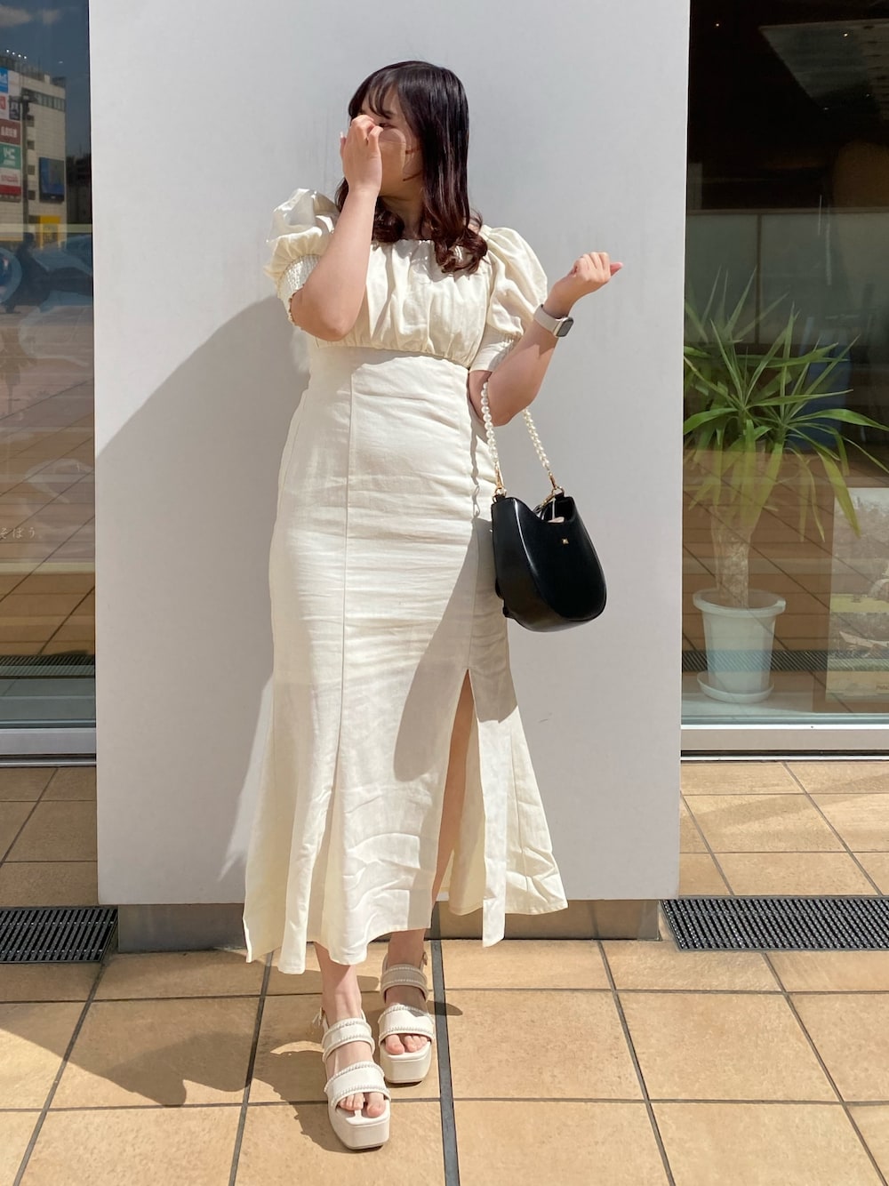 身長157cm足のサイズ23.0 骨格ストレート 細くないので体型が気になる方の参考に なれば嬉しいです♡ 【ワンピース】 去年も大人気だったリネンワンピース♡ リネン素材なので真夏の暑い時も涼しげに 着られます!!! 白だと下着が透けちゃったので、別で買った ペチコートを履いてます!!! 白やベージュ系のペチコートを合わせるのがおすすめです。 二の腕もゴムなので窮屈感が無く、お腹が出てるのも目立たないのでスタイルアップできます♡