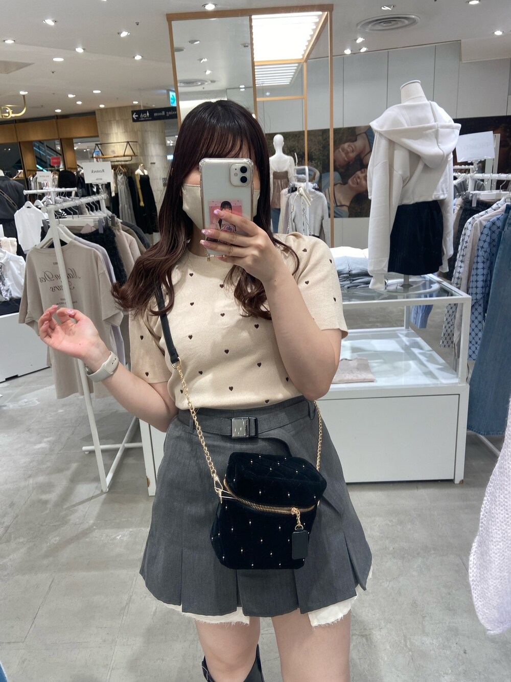 身長157cm足のサイズ23 骨格ストレート 細くないので体型が気になる方 の 参考になれば嬉しいです♡ 店頭で大人気でもうほぼないハートニット♡ さらさらのサマーニットなので、今から長く着られます! 二の腕きつくなくてさらっと着られるから嬉しい♡ 肩幅もパワショルが大きくないので大きく見えません! ミニスカはお腹が出て見えないから嬉しい🙆♀️ ベルトがあるのでどんな体型の方でもすっきり履けます!インナーあるので安心安全です◎