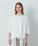 胸の切替にたっぷりとギャザーを入れたキャミソールワンピは、体のラインを拾いづらくストレスフリーに着られるアイテムです。 バックのヒモで丈感の調節も出来るので、小柄な方にもオススメのワンピース。 インナーには袖にさり気ないスリットの入ったデザインカットソーを合わせました。 腕の動きに合わせて、チラッと見える素肌が女性らしい印象になります。 日傘を持って初夏のお散歩にオススメしたいコーディネートです。